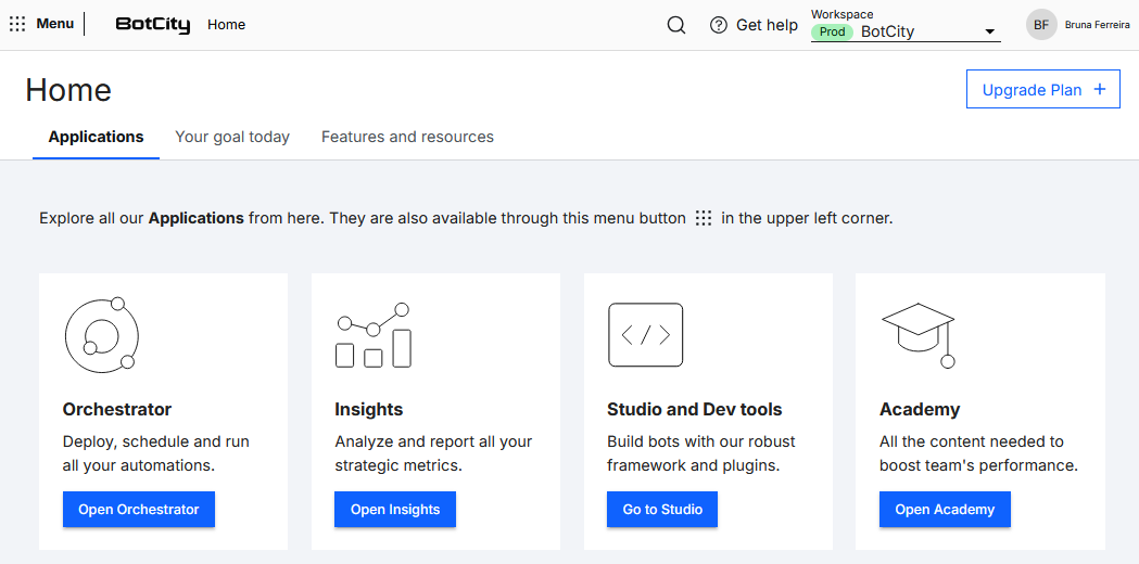 Si tienes un subdominio personalizado, es muy probable que tu URL sea algo como https://tuempresa.botcity.dev.