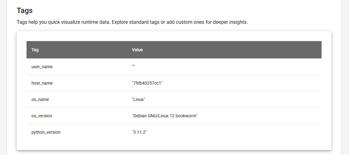 Tags provide a quick view of runtime data.
