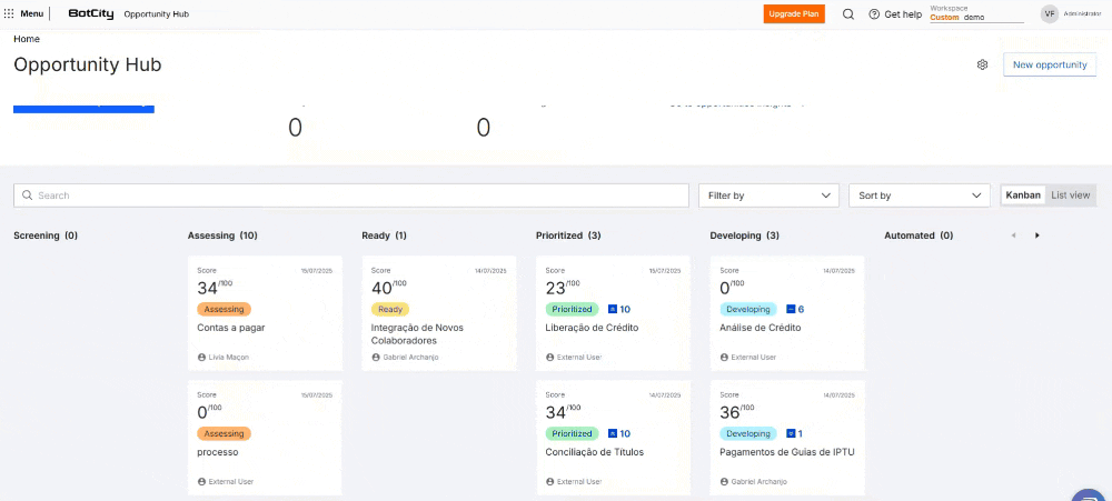To facilitate the search for opportunities, you can use the search, filter, and sorting menu.