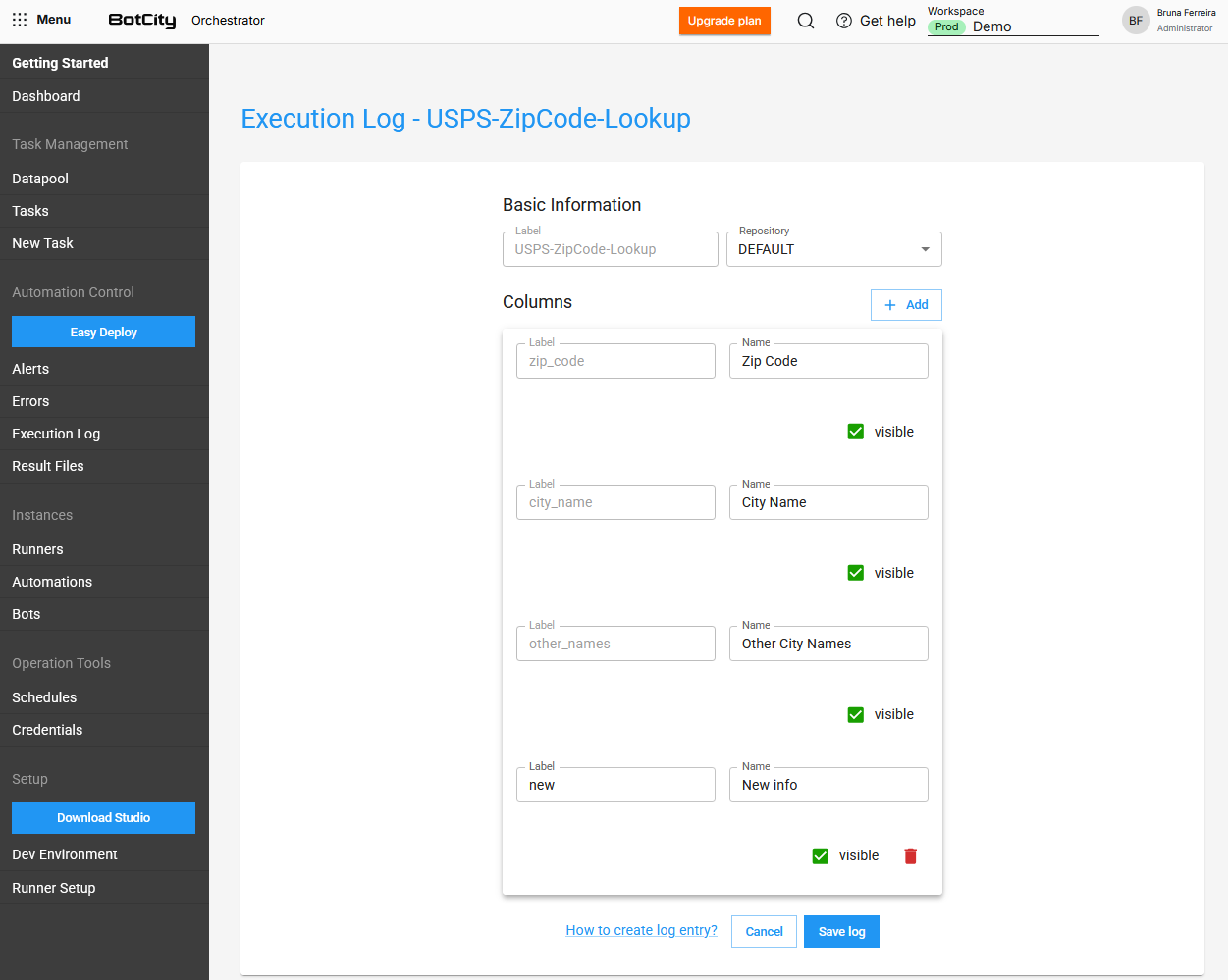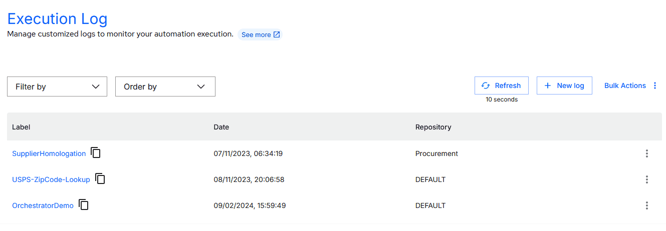 Você pode criar mais de um Log de execução e utilizá-los em uma única automação. Desta forma, você pode organizar os dados do seu processo da melhor forma possível.